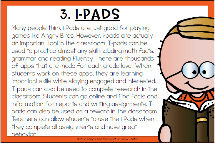 The author's point of view is that I-Pads are an important tool in the classroom.