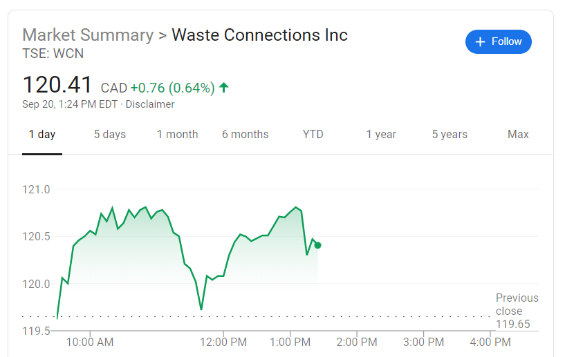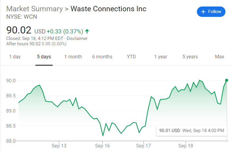 Waste Connections stock is publicly traded on the NYSE and what other major stock exchange