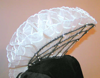 3 - Spanish: Narrower shoulders, gradually wider at hip. Trunk hose now being worn. Heavy use of black. Peascod belly and ruff are common components.