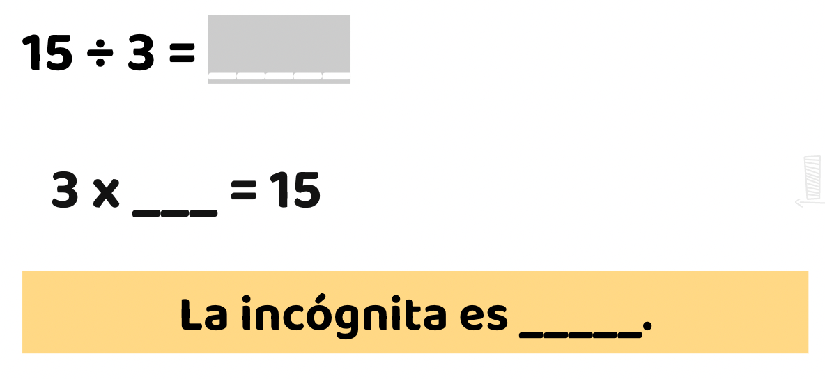 Usa una operación de multiplicación relacionada para hallar la incógnita.