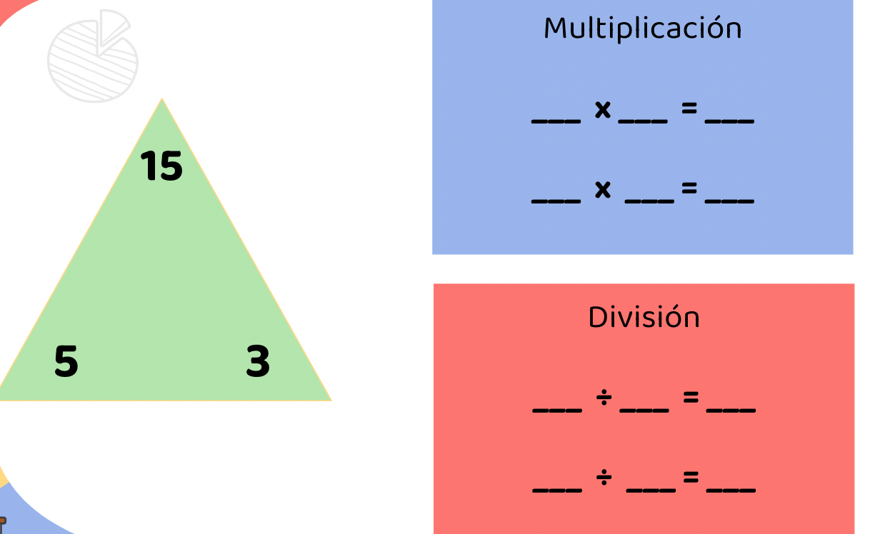 Escribe el enunciado de división para hallar las fichas en cada grupo.