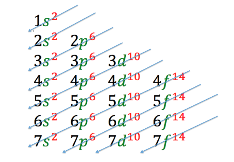 El orden de llenado de los electrones en los orbitales en orden creciente de energía.Se usa para hacer las configuraciones electrónicas de los átomos.