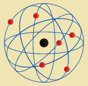 El átomo está formado por un núcleo pequeño donde está la carga positiva(protones) y se concentra casi toda la masa del átomo,espacio vacío y los electrones giran alrededor del núcleo en la corteza, describiendo órbitas planetarias.