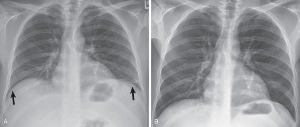 The CXR on the left is before treatment and the CXR on the right is after treatment. What has changed?