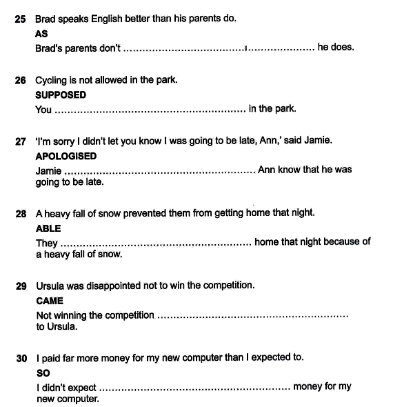 READING AND USE OF ENGLISH-Part 4 – Key word transformations