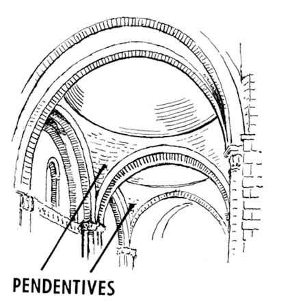 What innovation was created to support a dome built on top of a square base? (First used in Hagia Sophia's dome)
