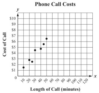 The scatterplot below shows the costs of phone calls of different lengths.