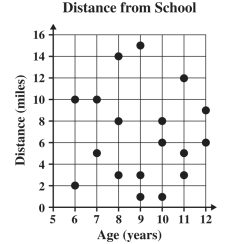 The scatterplot below shows the ages of some children and the distance each child lives from school.