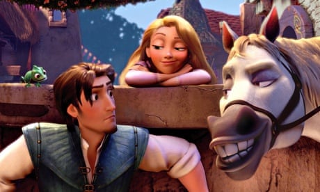What is the name of the Disney princess who is known for her long hair in the movie “Tangled” and what is the name or her rescuer?