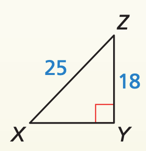 Answers may vary. *One option: Use pythagorean theorem to find the third side... Use inverse cosine to find the measure of angle Z... subtract this and the measure of angle Y from 180 to find the measure of angle X