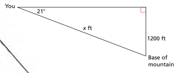 You are skiing on a mountain. Find the distance x from you to the base of the mountain.
