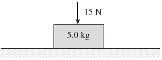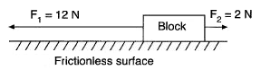 Two forces F1 and F2 are applied to a block on a frictionless horizontal surface as shown.  If the magnitude of the block’s acceleration is 2 m/s2, what is the mass of the block?