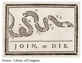 The image below is a political cartoon created by Benjamin Franklin. The cartoon was used to support declaring independence from Britain. This is what each letter represents.