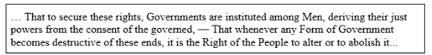The quote below is from the Declaration of Independence. This idea from John Locke is represented in the quote.