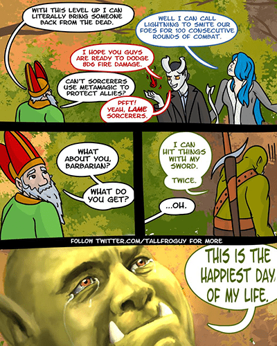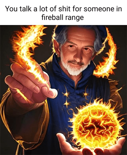 Um mago de evocação ou feiticeiro, dando fireball nos amigos.