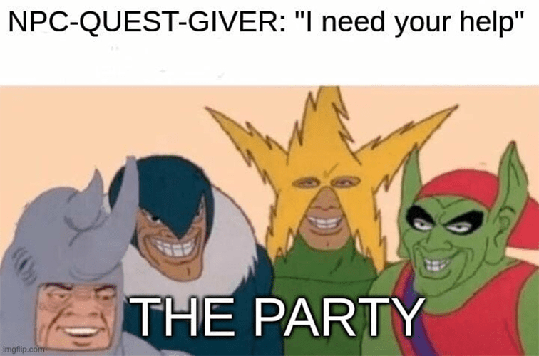 Qualquer jogador contra um NPC sem nome quando ele responde a uma pergunta inconsequencial com uma resposta perfeitamente razoável.