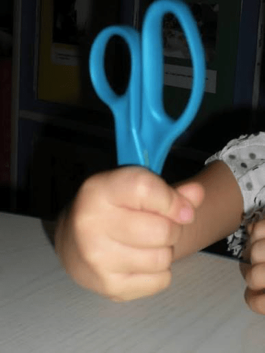 Demonstrate the proper way to hold scissors.