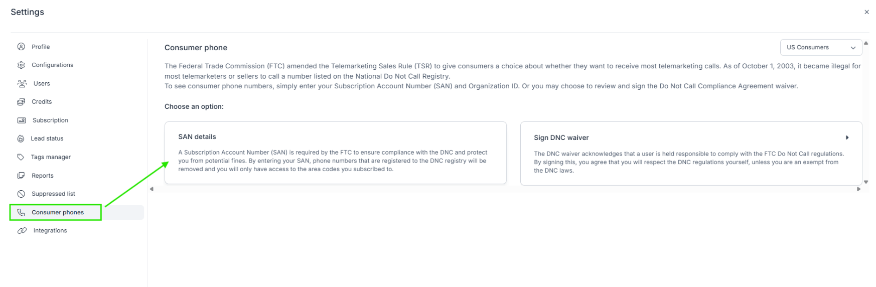 (T/F) The user can input their SAN info directly into their Salesgenie Account.