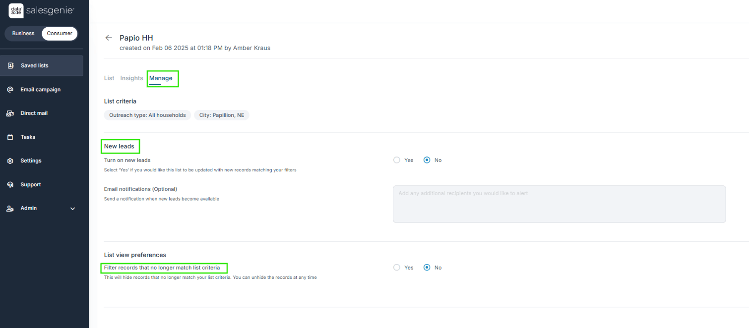 What is exporting leads/qualified lists from Salesgenie?