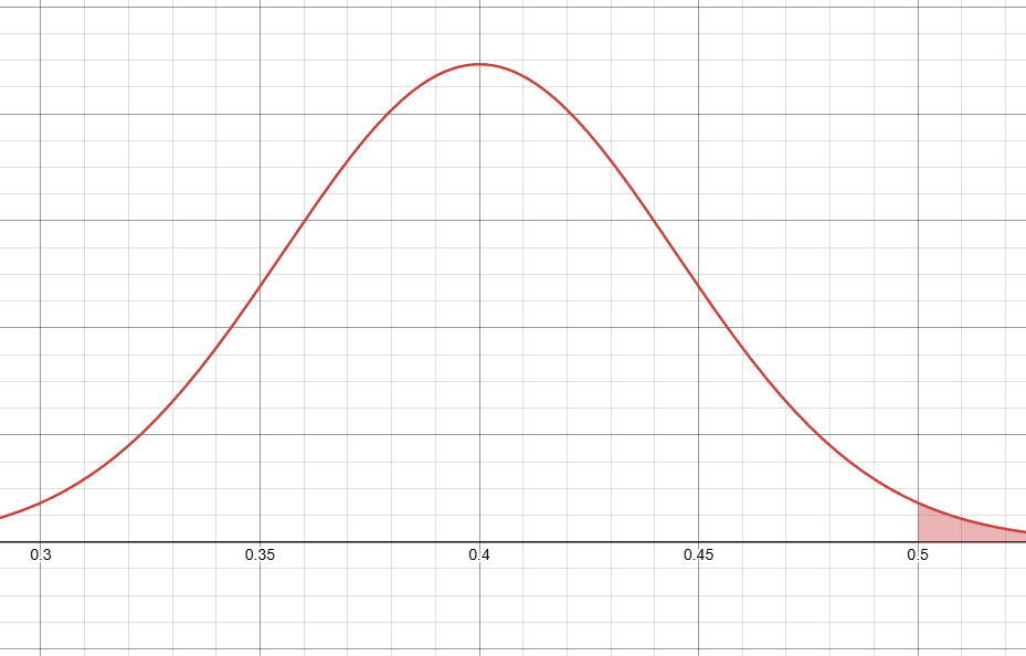 It is suspected that only 40% of students get at least 8 hours of sleep at night. Oshkosh surveys 120 random students about this issue. This is the mean of the sampling distribution for the proportion of students who get less than 8 hours of sleep.