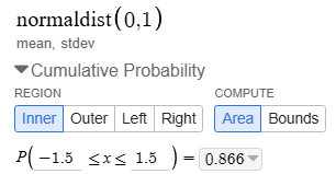 If a data set is normally distributed, what percent of the data will be within 1.5 standard deviations?