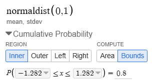 This is the number of standard deviations away from the mean the middle 80% of data will be in a normal distribution.