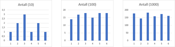 Jo færre ganger vi gjør et forsøk, jo nærmere kommer vi det forventede resultatet.