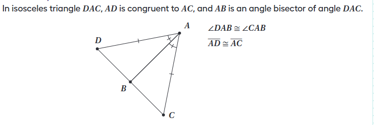 Given triangle ADB is congruent to triangle ACB, explain why AB is the perpendicular bisector for DC. You must FULLY explain why DC is bisected and why ABD = ABC = 90 degrees.