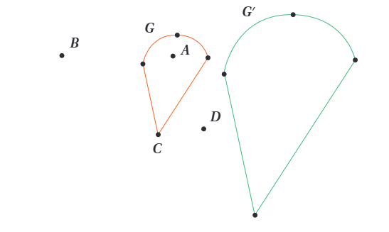 What is the center of dilation that takes G to G' with a scale factor of 2?