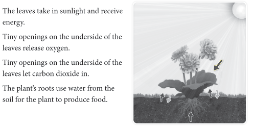 The plant's roots use water from the soil for the plant to produce food.