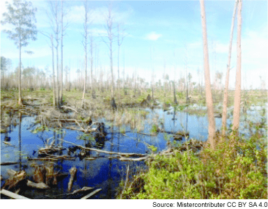 b. Does it survive in wet, hot conditions where there is a lot of standing water? Because the marsh and swamp has a lot of standing water and the piedmont does not.
