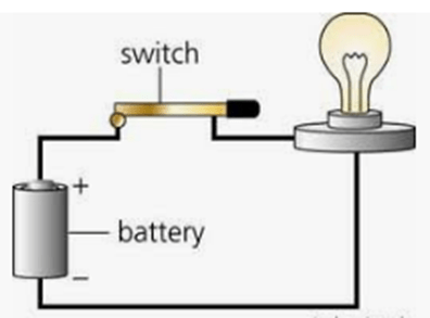 A closed Circuit, the energy will flow and the light bulb will light up.