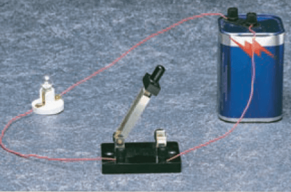 What is battery, wire, light bulb, switch.