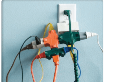 TRUE OR FALSE: Is it ok to plug in as many appliances as you want into a single outlet like the one shown here?