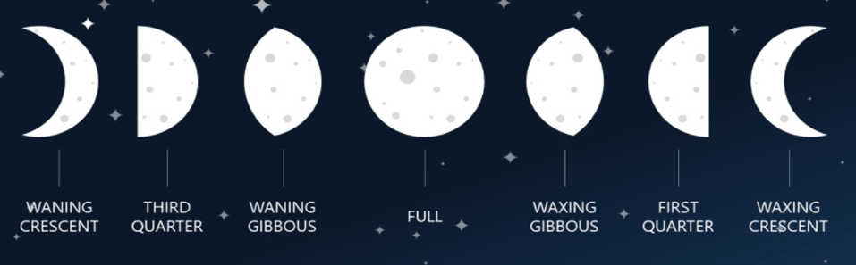 • Draw the phases of the moon in the correct order: You will need to shade each circle and label each below the box