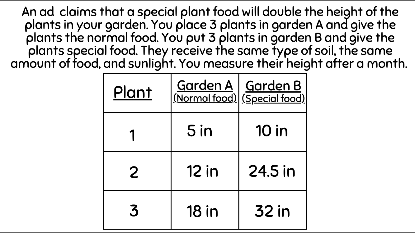 2/3 of the plants in Garden B doubled their height. The special food works and the ad is correct.