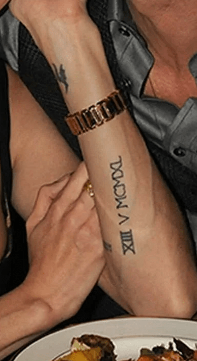 Among the numerous tattoos on this actress's body is the Roman numeral XIII on her left arm—her favorite number.