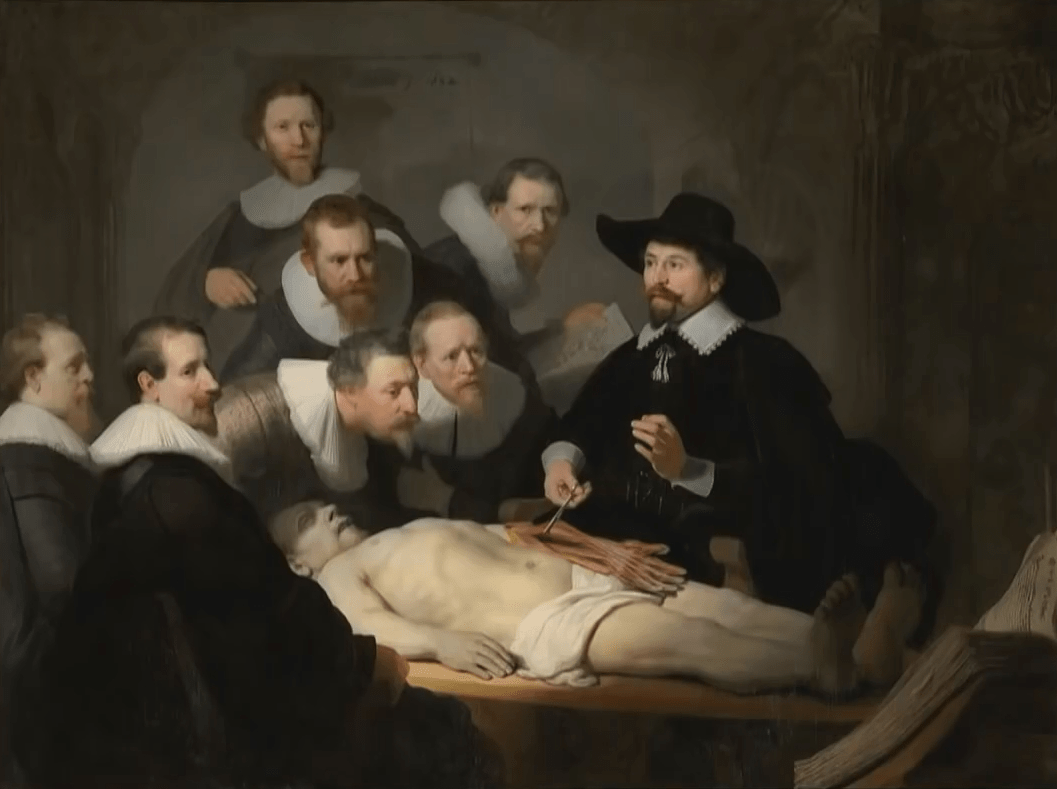 "The Anatomy Lesson of Dr. Tulp" (Adriaenszoon in the painting as a corpse, a teaching aid)