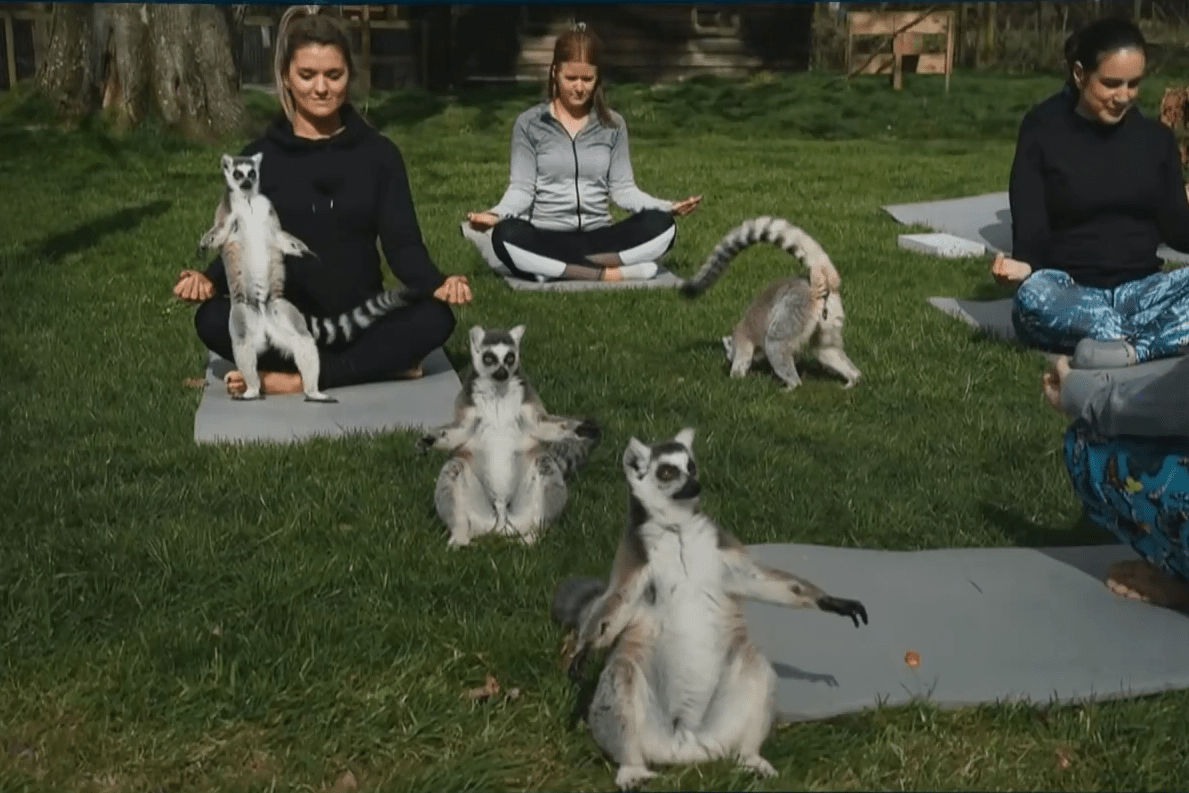 In the Lake District National Park, visitors are invited to do just that with the lemurs that live there. The experience is called "lemoga."