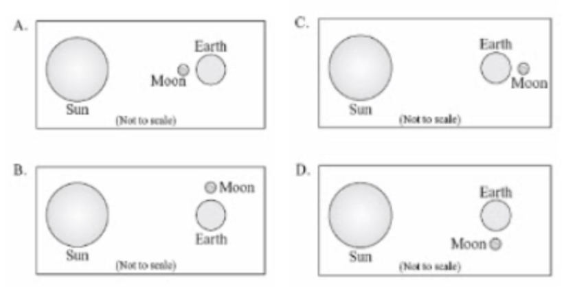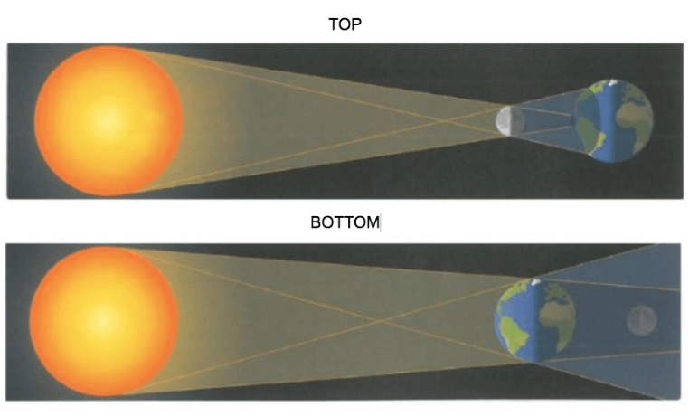 Which 2 diagrams show a lunar and solar eclipse? (tell which is which)