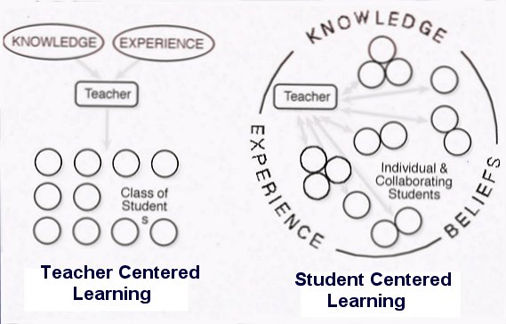 These styles of teaching describe the teacher's role in the classroom; where teachers either directly deliver information for students to obtain, or provide interactive experiences to promote learning.