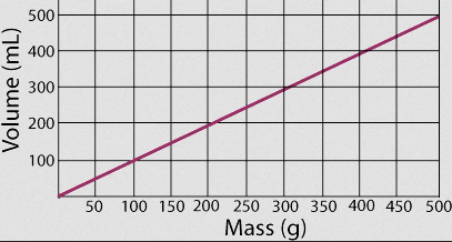 What is the density of a substance that has a mass of 32g and displaces the following volume: