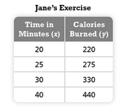 The table shows the number of calories Jane burns while exercising. How many calories would she burn by exercising for 29 minutes? Explain.
