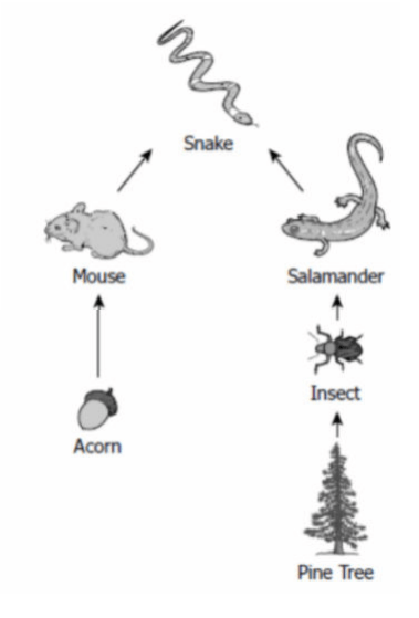 Snakes get energy from salamanders and mice.