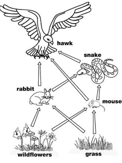 In the food web below, the hawk would be considered a: