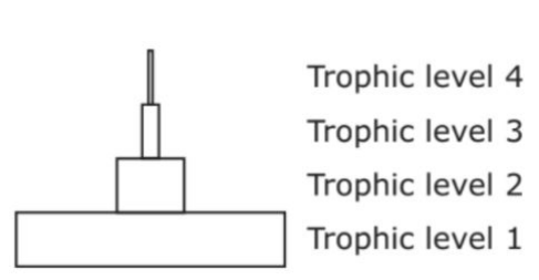 There is less available energy in the fourth trophic level because of the loss of energy through metabolism in each of the lower trophic levels.