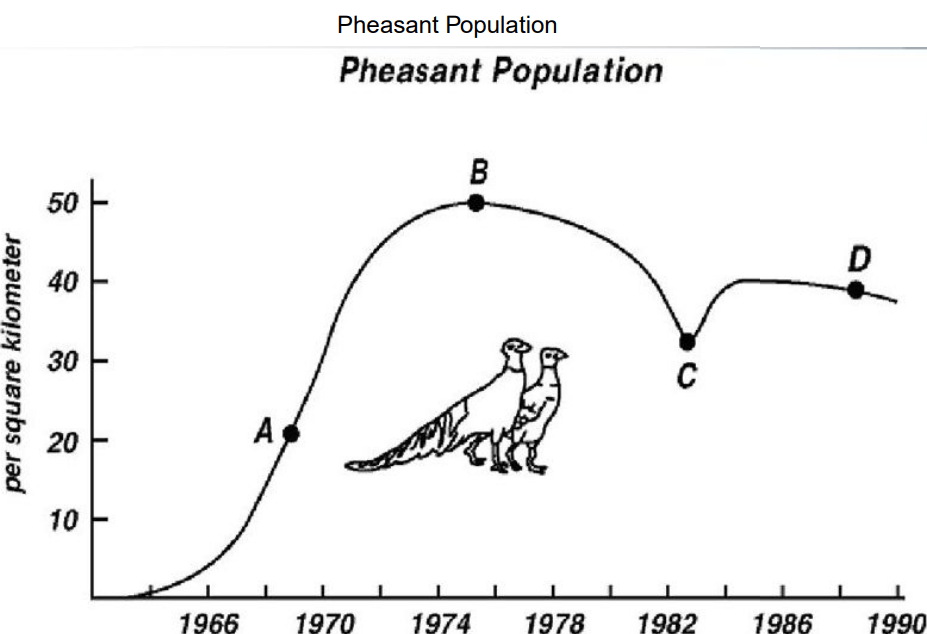 What are three explanations for the change in the pheasant population between Point B and Point C?