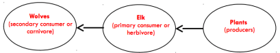 If wolves were eliminated from this ecosystem, how will the population of plants be indirectly affected?