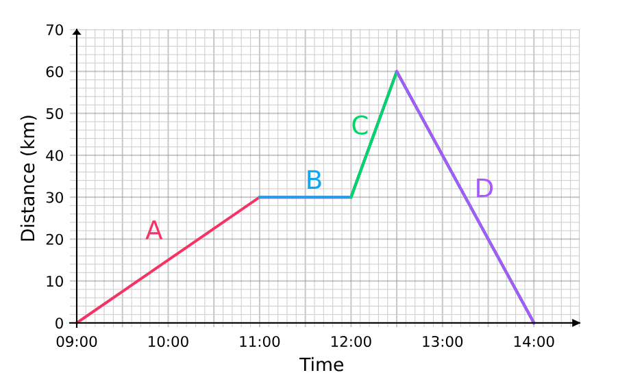 The graph shows the movement of an object over a period of 5 seconds. What is the objects average speed over the 5 sec interval?