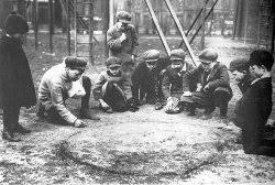 A circle was drawn in the dirt and kids used "taws" and "cat's eyes" to play.